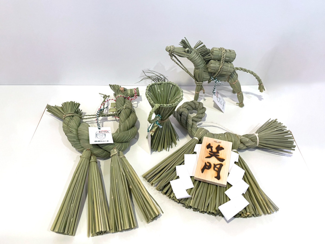 他では見たことのないような、ユニークな形をしたしめ縄や、縁起ものの飾りがあり、見ているだけでも楽しくなります。