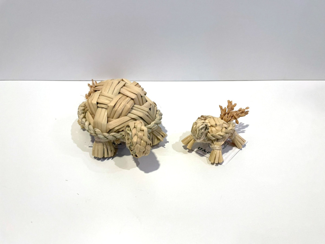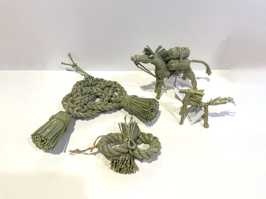 そんな風に本来の文化が薄れつつあることに危機感を感じ、本物の国産わらの伝統を守るため誕生したのが、長野県飯島町のわら細工職人集団「わらむ」。「飯の島(めしのしま)」とも言われる米どころで、「白毛餅米」という希少な古代米の稲わら「勝藁(かちわら)」を用いて、職人さんが手作りしています。